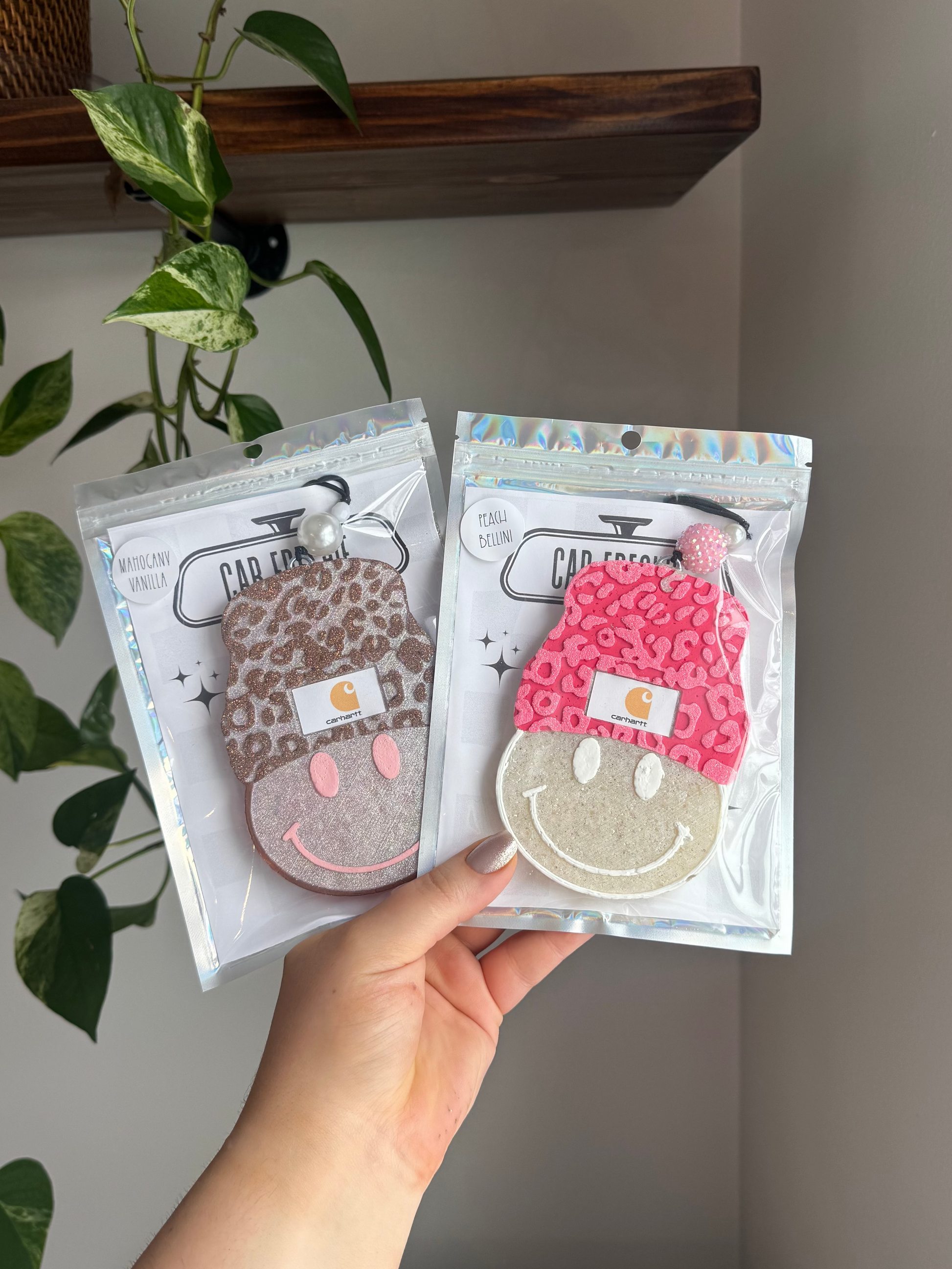 These car freshies are made to hang from your rear view mirror in your vehicle but can also be used in many places such as a closet, drawer, bathroom, locker, you name it! They normally last 3-7 weeks but some scents are stronger than others and can vary depending on your climate. Keep in mind that in hotter months, these may not keep their scent as long, due to the sun drawing out the scent faster. I use premium aroma beads and fragrance oils only. These are great as presents for any occasion or just to treat yourself! All of my car freshies are packaged in a sealed holographic foil pouch that’s durable, eco-friendly, and waterproof