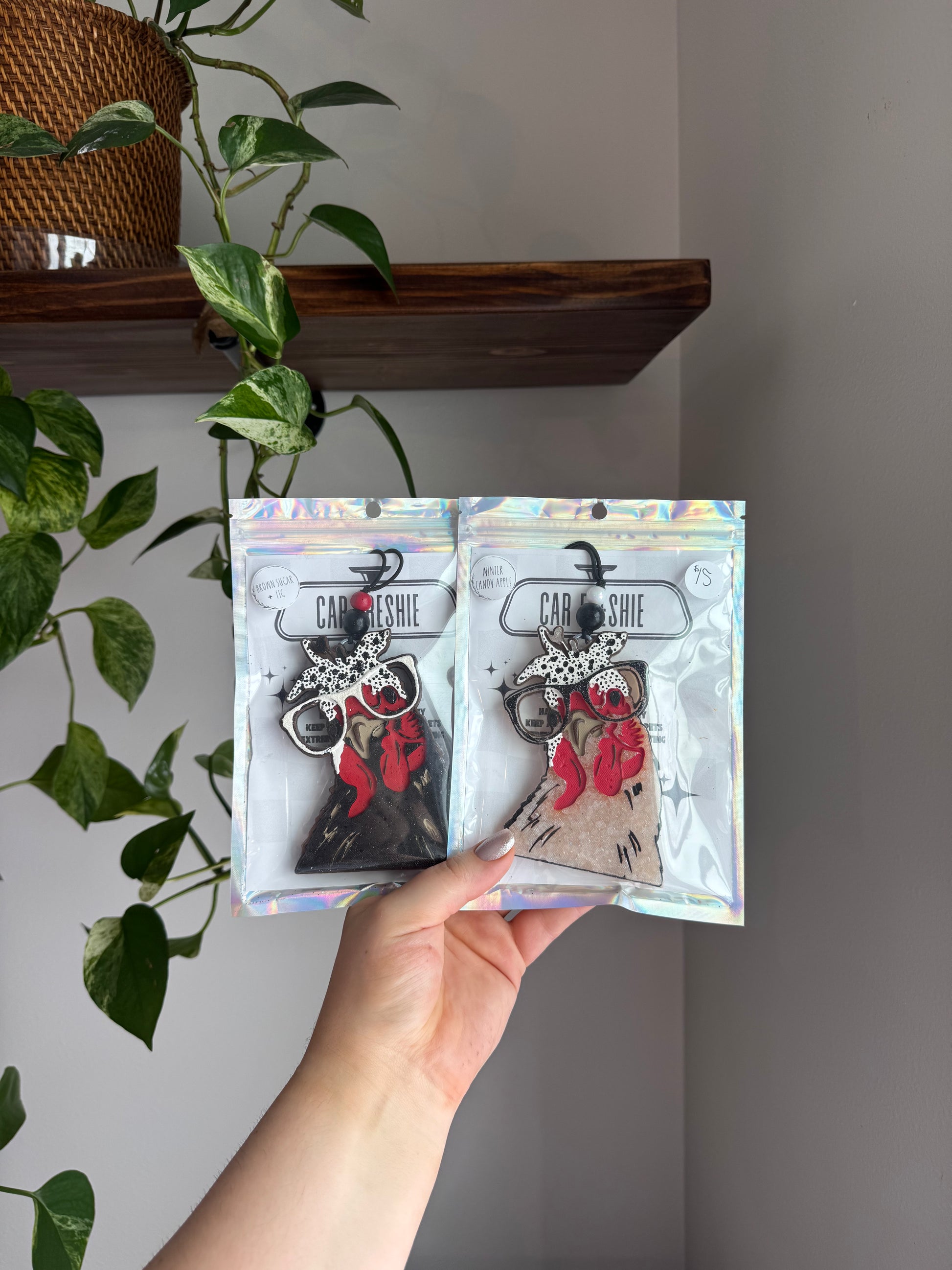 When using these in a vehicle or anywhere that can get excessively hot, do not lay them on a surface. Also, if you use a windshield sunshade in your vehicle, make sure the freshie does not get caught in between the sunshade and window, the excessive heat can cause it to melt and stick to a surface. These can melt in extreme temperatures. However, we are not responsible for replacing your freshie if it melts and will not issue a refund. We aren't responsible for any damages it could cause. You are buying at your own risk and by purchasing this listing you are agreeing to these conditions.